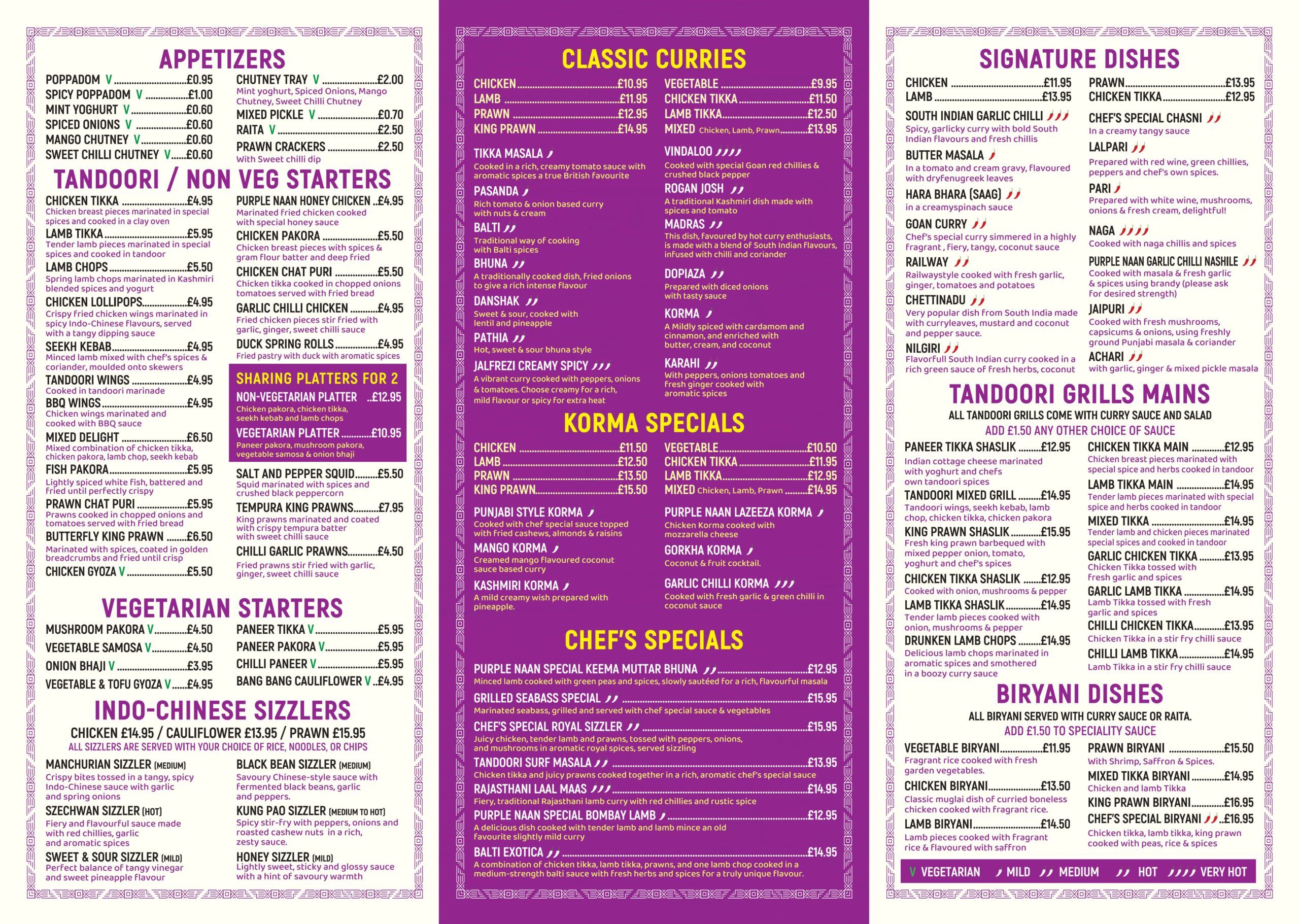 DINE IN / TAKE AWAY MENU